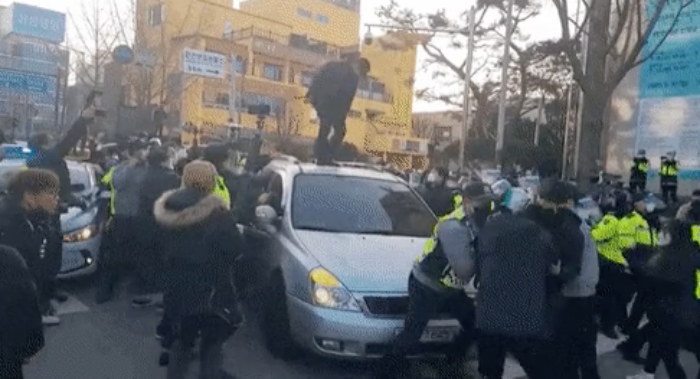 경찰 "우리도 같은 마음이에요. 그만합시다. 다치시진 않았어요?"