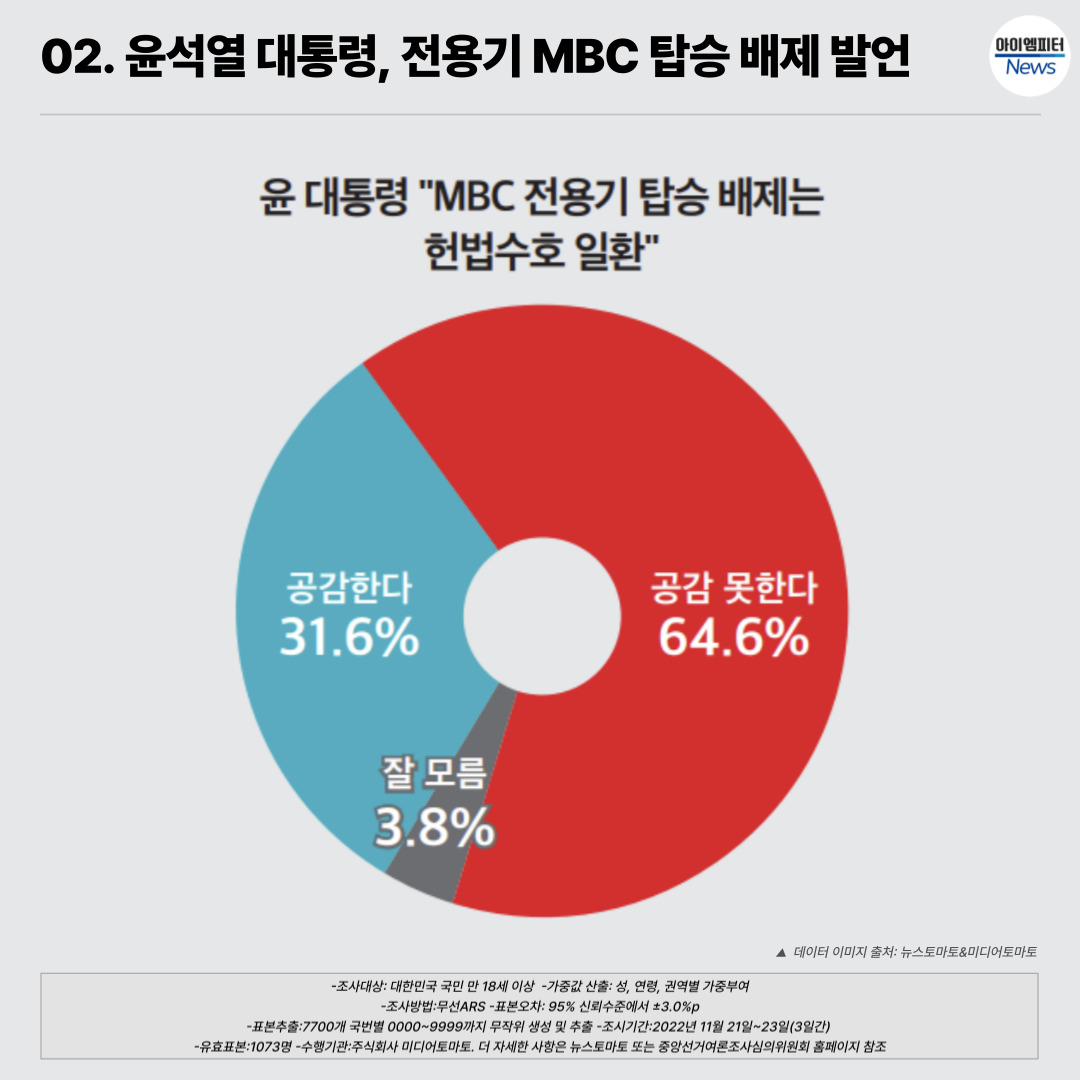 윤석열 대통령은 "MBC 전용기 탑승 배제는 헌법수호 일환"이라고 주장했습니다.