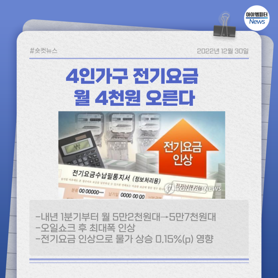 -전기요금 인상으로 물가 상승 요인은 0.15%포인트(p) 영향