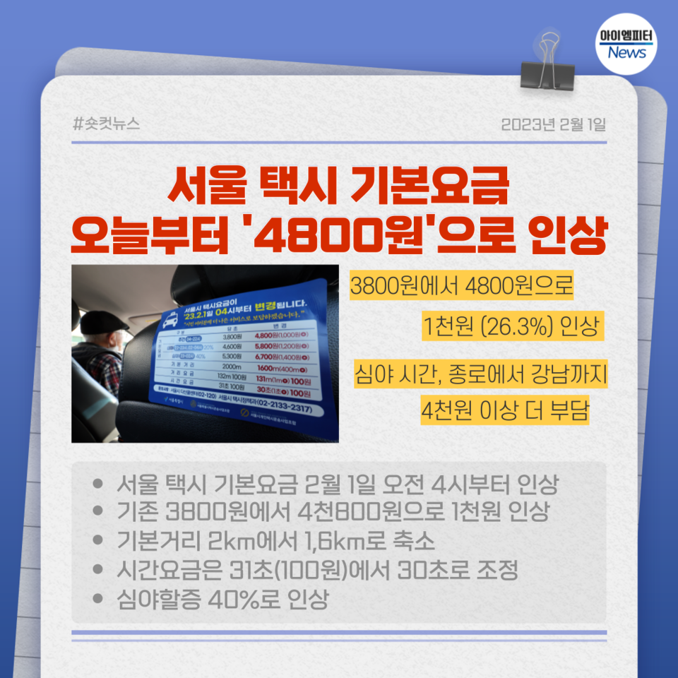 -서울 택시 기본요금 2월 1일 오전 4시부터 인상