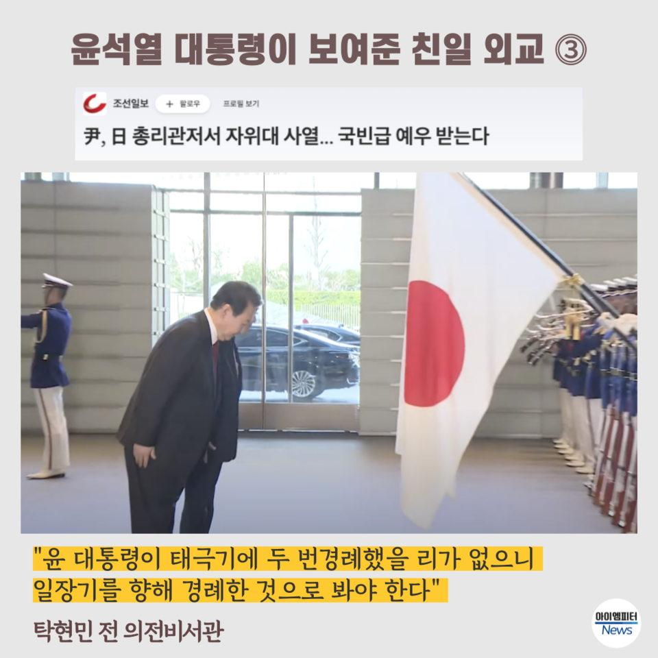 국민의 정서와 아픔 대신 일본의 관행을 선택한 윤석열 대통령. 과연 그가 어느나라 대통령인지 묻고 싶다.